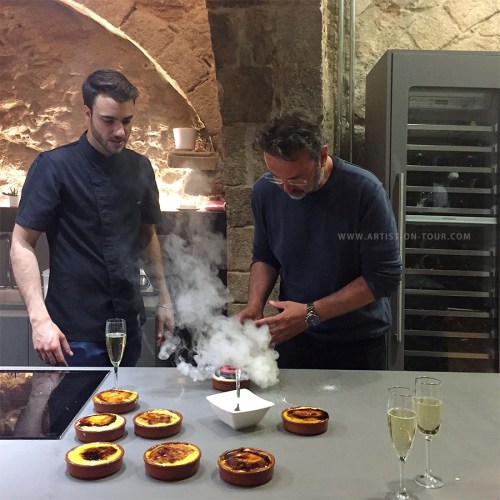 Ich beim karamelisieren der Crema Catalana